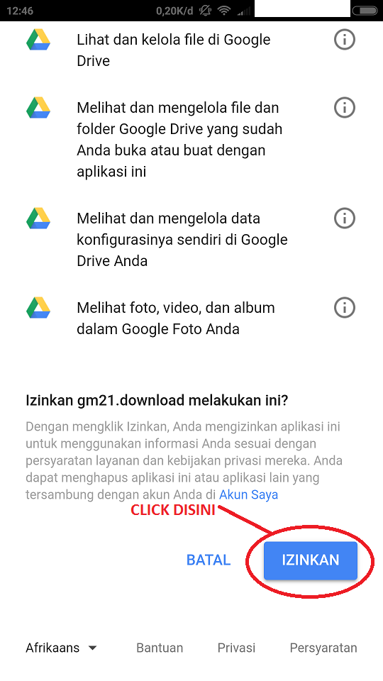 Click Izinkan/Allow Untuk Copy File Ke Akun Drive Kalian
