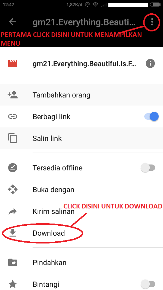 Jika Anda Menggunakan Android, Makan Langsung Terbuka App Drive Di Android Kalian Click Kanan Atas Untuk Menampilkan Menu, File Tersebut Bisa Kalian Langsung Download Atau Tonton Streaming Langsung, Streaming Langsung Bisa Digunakan Setelah Proses Encode Film Telah Selesai Kurang Lebih 2 Jam/Film